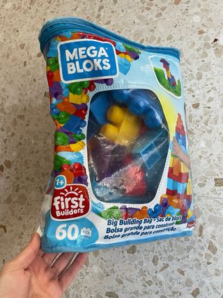 Bolsa de bloques de construcción Mega Bloks. - Incluye una variedad de bloques de colores. - Bolsa de almacenamiento con cremallera y asa. - Ideal para construir y crear. - Marca: Mega Bloks (Fisher-Price).