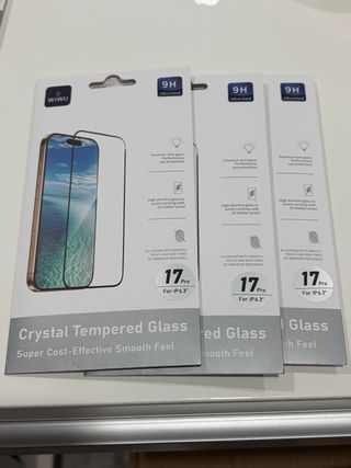 Pack de tres protectores de pantalla de cristal templado para iPhone 17/16pro Pack 3 unidades por 9.99€ - Protección de pantalla 9H. - Anti-rayaduras y anti-roturas. - Alta transparencia y tacto suave.