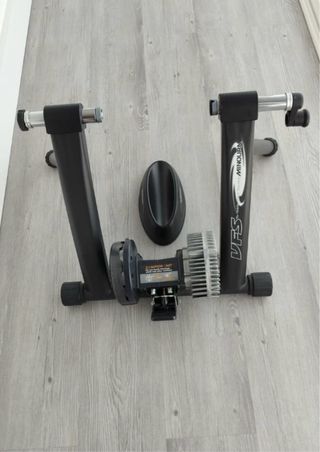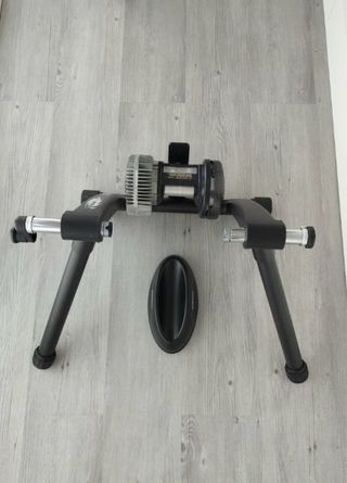 Rodillo de entrenamiento Minoura para bicicletas. - Estructura robusta de color negro. - Incluye soporte para rueda delantera.