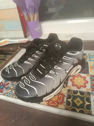 Zapatillas Nike Air tb en buen estado en general. Tienen alguna marca y desgaste pero bien para su uso. Ver fotos para ver estado Zapatillas deportivas Nike con un diseño moderno y llamativo. - Combinación de colores negro y gris. - Detalle de líneas plateadas. - Logo de Nike en la lengüeta.