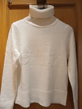 Jersey de punto fino en color blanco, con cuello alto. - Diseño de cuello alto acanalado. - Puños y bajo elásticos. - Tejido suave al tacto.
