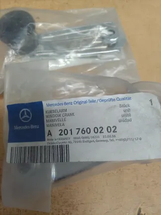 Manivela para elevalunas de Mercedes-Benz W201. - Pieza original Mercedes-Benz. - Número de pieza: A 201 760 02 02. - Fabricado en Alemania. Válido para muchas versiones más como W108,W107,W124,W123,W461,W463 nueva e original en su bolsa sin abrír después de décadas en el taller, valen para ambos lados y el precio que tiene puesto es por las dos gracias y es su precio y no me digas precio o ofertas, porque la rechazo, si quieres una sería la mitad ya que las vendo por separado🫂💯