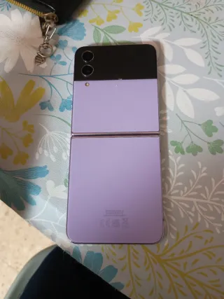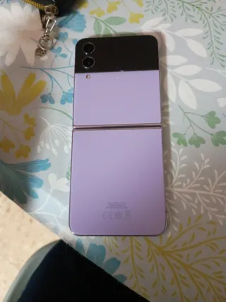Teléfono móvil Samsung Z Flip 4 en color morado. Se encuentra en estado nuevo. - Diseño plegable. - Pantalla exterior. - Cámara dual trasera.