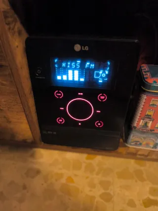 Mini cadena LG con conexión USB. CD va perfecto - Color negro. - Reproduce música desde USB. Mando