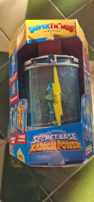 Base secreta de Super Things, modelo Kazoom Power. - Incluye figura y accesorios. - Diseño transparente con detalles en azul y amarillo. - Caja original.