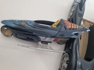 Batmovil de Batman. - Diseño futurista en tonos azules y negros. - Detalles interiores en amarillo y rojo. - Incluye figura de Batman.