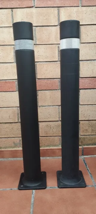 Bolardo flexible de color negro, ideal para delimitar espacios. - Fabricado en material flexible. - Banda reflectante para mayor visibilidad. - Base cuadrada para fijación.