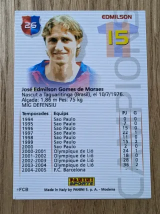 Edmilson #26 - Megacracks 2004-2005 Barça Campions - Edición Megacracks 2004-2005. - FC Barcelona 2004-2005 - Dispongo de mas en mi perfil. - Si te interesa alguna que no está en el perfíl, contacta conmigo y miro si la tengo. - Si quieres varias de mi perfil, puedo crear un artículo nuevo para que el envío sea más económico. - Puedo subir mas imágenes si se solicitan sin problema.