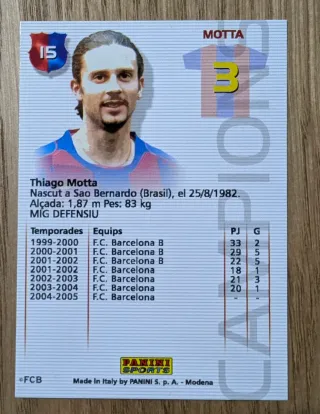 Motta #15 - Megacracks 2004-2005 Barça Campions - Edición Megacracks 2004-2005. - FC Barcelona 2004-2005 - Dispongo de mas en mi perfil. - Si te interesa alguna que no está en el perfíl, contacta conmigo y miro si la tengo. - Si quieres varias de mi perfil, puedo crear un artículo nuevo para que el envío sea más económico. - Puedo subir mas imágenes si se solicitan sin problema.