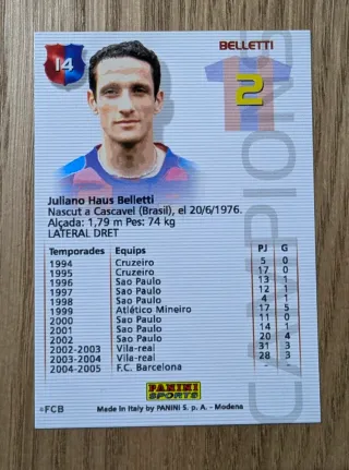 Belletti #14 - Megacracks 2004-2005 Barça Campions - Edición Megacracks 2004-2005. - FC Barcelona 2004-2005 - Dispongo de mas en mi perfil. - Si te interesa alguna que no está en el perfíl, contacta conmigo y miro si la tengo. - Si quieres varias de mi perfil, puedo crear un artículo nuevo para que el envío sea más económico. - Puedo subir mas imágenes si se solicitan sin problema.