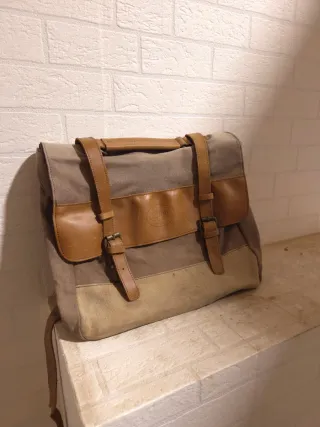 Alforja de la marca Craftride, combinando piel y tela en un elegante color marrón. Estuvo montada en una Triumph Bonneville. - Materiales: Piel y tela. - Color: Marrón.