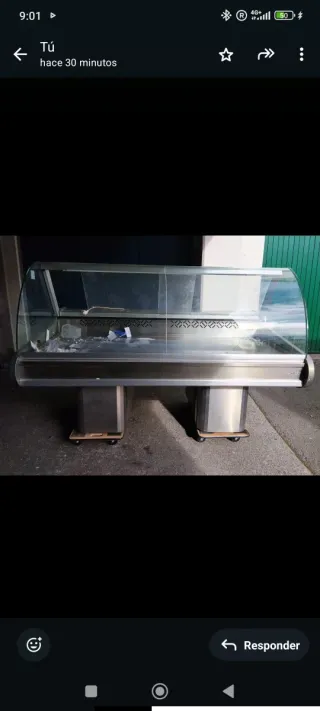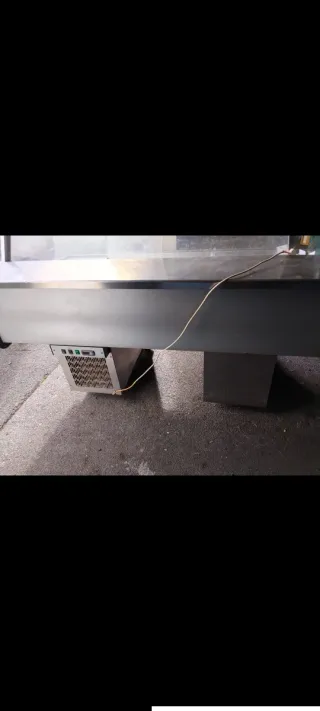 Mostrador refrigerado con vitrina de cristal. - Estructura metálica. - medida.largo 2M. Altura. 1.30. Anchura . 1.20. Está en buena condiciones. Cualquier información puedes conectar con WhatsApp 0034604221801