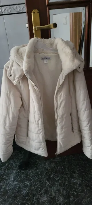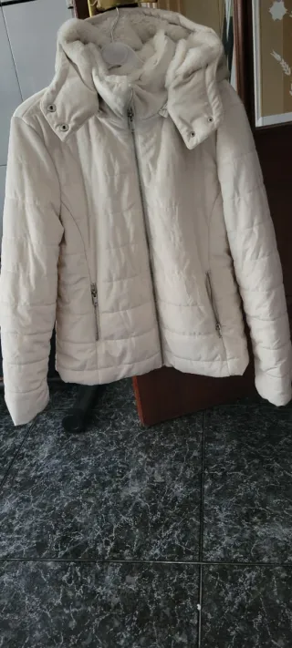 Chaqueta acolchada con cuello y detalles de pelo sintético. - Cierre de cremallera. - Bolsillos laterales con cremallera. - Capucha integrada.