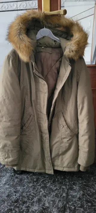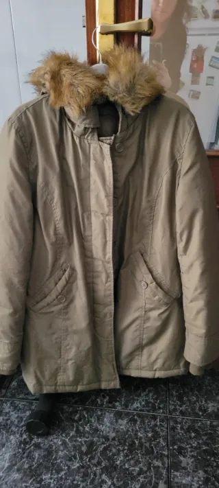 Chaqueta tipo parka para mujer, ideal para el frío. Cuenta con un diseño moderno y funcional. - Capucha con pelo. - Cierre de cremallera. - Bolsillos con botón.