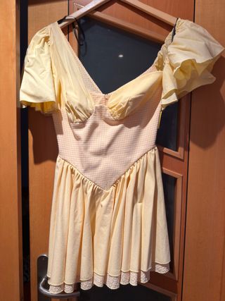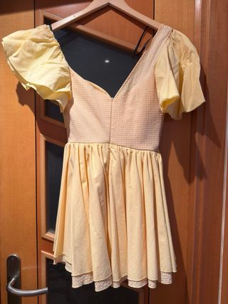 Vestido de la marca Guts & Love, en talla XS. Solo se ha usado una vez. - Diseño con estampado de cuadros. - Mangas abullonadas. - Falda con vuelo.