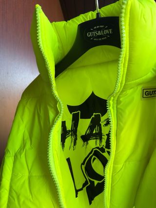 Plumífero corto de la marca Guts & Love. - Diseño llamativo en color amarillo. - Cierre de cremallera. - Cuello alto.