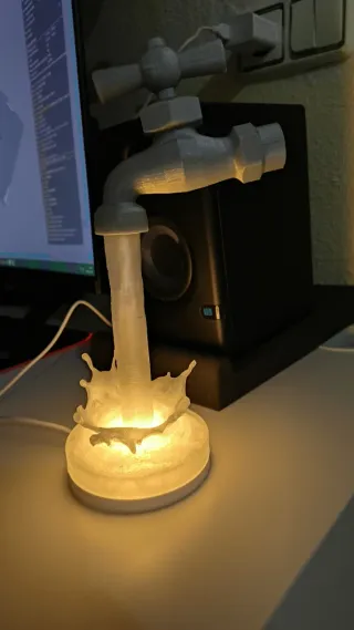 Original lámpara decorativa con diseño de grifo y efecto de agua salpicando.。 - Fabricada con impresión 3D. - Base iluminada con luz. - Diseño único.