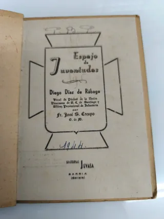 Libro que el fraile mercedario José Santiago Crespo Pozo dedicó al miembro de Acción Católica, Diego Díaz de Rábago (natural de Pobra do Caramiñal), que murió durante la Guerra Civil. Edición única, 1944.