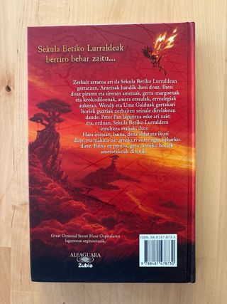 Libro en euskera, adaptación del clásico Peter Pan. Ejemplar en muy buen estado, sin subrayados ni páginas rotas.