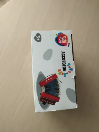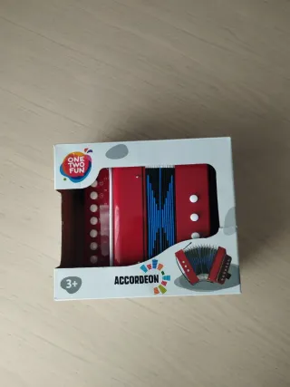 Acordeón de juguete para niños a partir de 3 años. Presentado en su caja original. La caja tiene marcas de uso. - Diseño llamativo en color rojo. - Marca: ONE TWO FUN. - Incluye un pequeño folleto ilustrado.