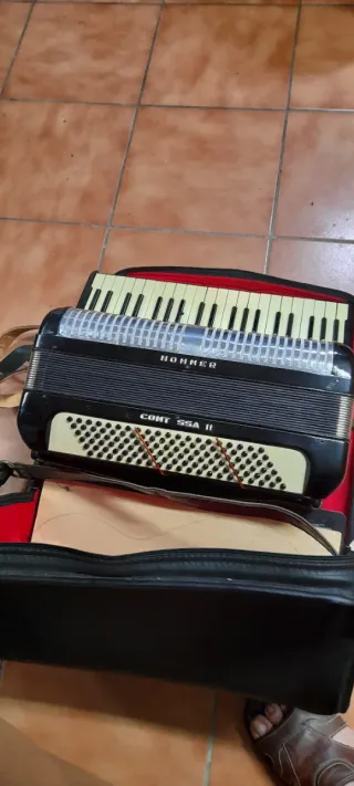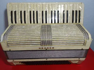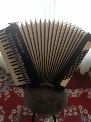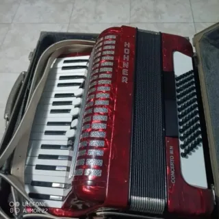 Vendo acordeon alemán hohner concerto III N. 34 teclas con tres voces y cinco registros 72 bajos con dos registros Perfecto estado de afinación y sin pérdidas de aire. Estuche y correas originales. Se puede ver y probar sin compromiso.
