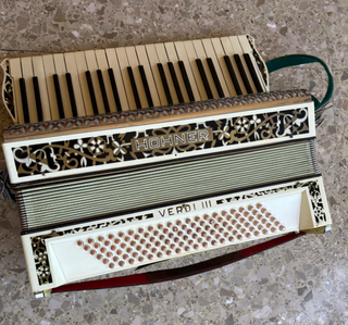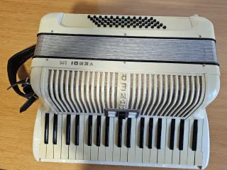 Acordeón Hohner Verdi I M en color blanco. Un instrumento clásico para amantes de la música. - Diseño elegante en blanco. - Modelo Verdi I M. Disponible a negociar precio