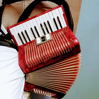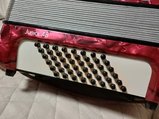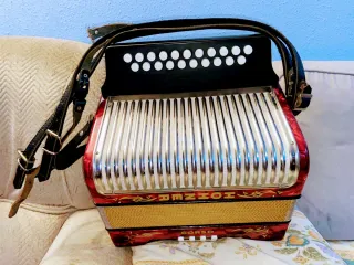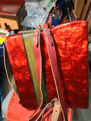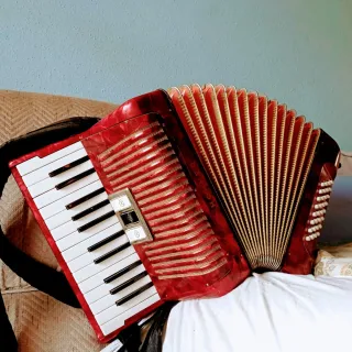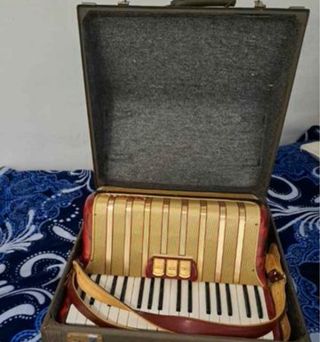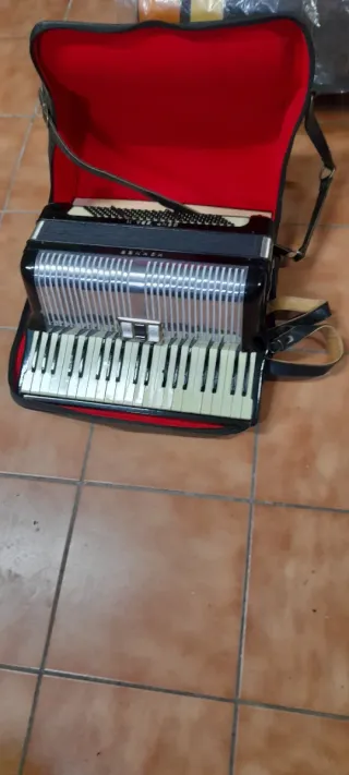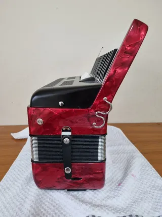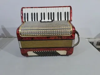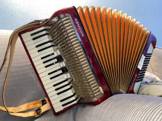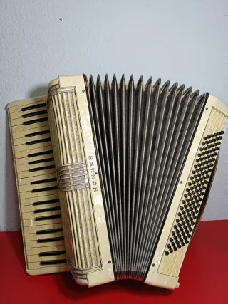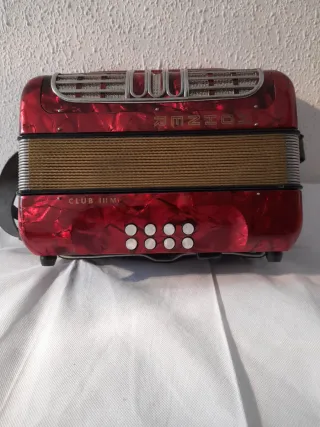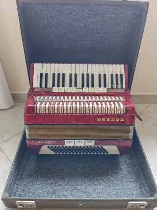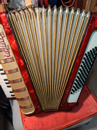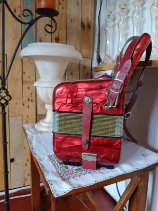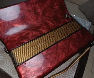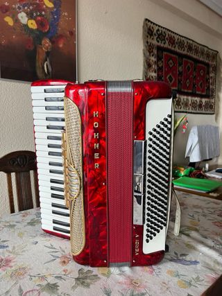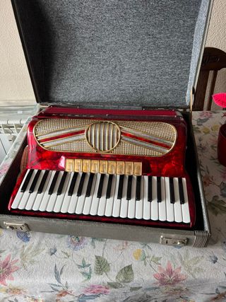 Precioso acordeón Hohner Concerto en color rojo nacarado, instrumento con presencia, carácter y ese encanto atemporal q solo tienen los acordeones bien hechos. Sus acabados son elegantes y cuidados, con teclado limpio, botones en buen estado y fuelle firme, conservando toda su estética vintage. Ha sido tratado siempre con respeto y cariño. Ideal tanto para músicos como para coleccionistas o amantes d los instrumentos clásicos q buscan un acordeón con personalidad y sonido auténtico.Perfecto para folk, música tradicional, tango, chanson o simplemente para disfrutarlo en casa.Se entrega tal como se ve en las fotos, muy bien conservado