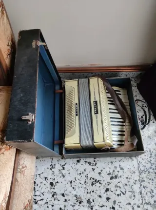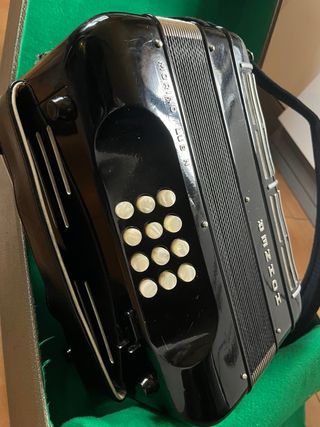 Acordeón fabricado en Alemania, en buen estado. Revisado y afinado por luthier profesional. Con sus correas y maleta originales, incluidas.