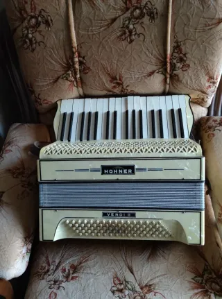 Acordeón Hohner Verdi V en muy buen estado. Modelo de piano, 120 bajos, sonido potente y equilibrado, ideal tanto para estudiantes avanzados como para músicos aficionados o de conservatorio. El acordeón funciona perfectamente: • Teclas y bajos responden correctamente • Fuelle en buen estado, sin fugas de aire • Mecanismo suave • Muy bien cuidado estéticamente Incluye estuche rígido original, perfecto para transporte y protección. Marca Hohner, sinónimo de calidad y fiabilidad en acordeones. Se vende por falta de uso. Se puede probar sin compromiso. Precio negociable Entrega unica en mano, Alcorcón y alrededores.