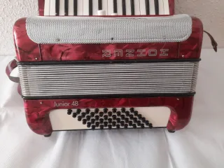 Muy bonito y bien conservado. Revisado profesionalmente y funcionando perfectamente 4 voces, 5 registros, 120 bajos. Con mochila acolchada en buen estado. Atiendo con gusto por aquí. Total formalidad, abstenerse curiosos