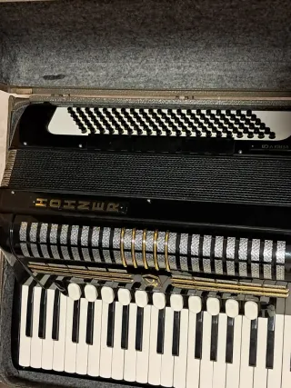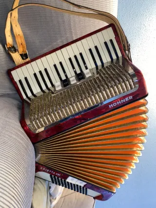 Acordeón HOHNER con 120 bajos. Muy cuidado. Funcionamiento perfecto. Como recien estrenado. incluye maleta original. Este acordeón estaria encantado de tener una nueva vida y volver a vivir la música en otras manos que le sigan tratando con cariño.