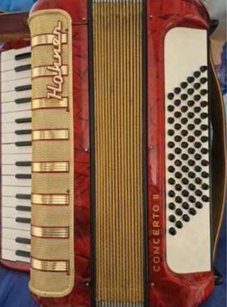 Acordeón Hohner Concerto II en color rojo brillante. Un instrumento clásico con un diseño llamativo. - Acordeón Hohner. - Modelo Concerto II. - Color rojo. - 34 teclas,72 bajos,3 registros,2 y 4 voces. -Muy buen estado y afinado.solo por teléfono.