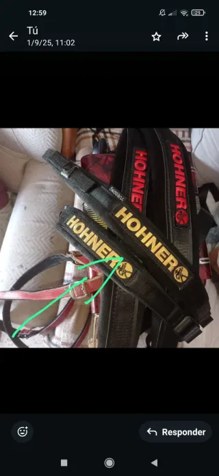 Vendo acordeón Hohner Tango IM, modelo clásico/vintage de gran calidad. El acordeón funciona correctamente: todas las teclas y botones suenan y el fuelle mantiene bien el aire. Presenta signos normales de uso y del paso del tiempo (ver fotos), pero está completo y en buen estado general para su edad. Ideal para tocar, para coleccionistas o como instrumento tradicional. Características: • Marca: Hohner • Modelo: Tango IM • Acordeón de teclado (piano) • Correas incluidas