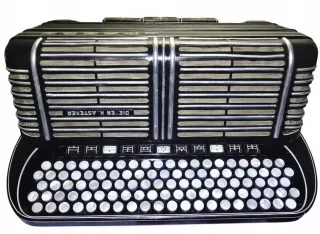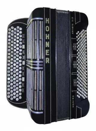 Acordeón de botones Hohner Morino Artiste IX D. 180 bajos a 4 y 5 voces. Todas las teclas funcionan aunque seguro que es necesario una puesta a punto. Beltuna, Paolo Soprani, Borsini, Crucianelli, Piatanesi, Piermaria, Bugari, Fratelli Crosio, Castelfidardo, Scandalli, - Diseño clásico en color negro. - Teclado con botones. - Detalles plateados. - Marca HOHNER grabada.