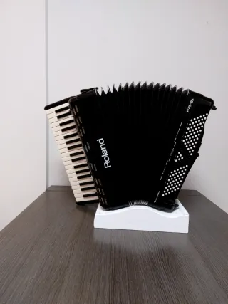 Acordeón Roland FR-3x en color negro. Estado impecable, altavoces incorporados, muy poco uso, no ha salido de casa. Con su libro de instrucciones, alimentador, cargador, 3 USB con ampliaciones de sonido dallape, Orchestra y alpine. Cargador de pilas. Un capricho de acordeon