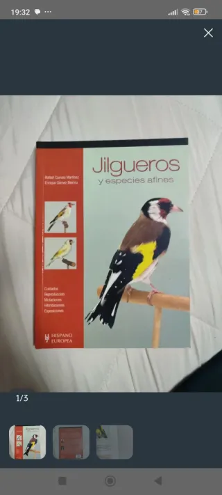 Libro jilgueros y especies afines, tiene algunas páginas daladas de ahi su precio
