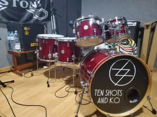 Bombo de 18x16 Tom 10x (8 o 9”) Base de 12x10!! Incluye las 3 piezas descritas, sin herrajes ni platos Suena muy pro, facil de afinar y amplio rango Parches Remo on Top Ambassador y Powerstroke en Bombo más EvanS