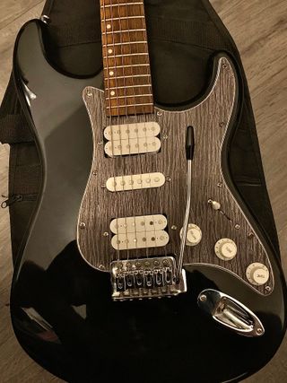 ⚜️Guitarra eléctrica Gregg Bennett Design con la configuración más versátil HSH Excelente guitarra estilo strato moderno tirando a Superstrato con muy buen sonido potente entre los humbuckers y el single * Made in Korea * Cuerpo de tilo (ligeras marcas en la parte trasera debidos a sus años) * Mástil de arce forma C muy comodo * 22 trastes medio jumbo * Golpeador gris precioso HSH * Puente tremolo con su palanca * Pala high gloss con vetas de la madera La🎸viene con su funda acolchada + afinador + llaves y púas🎁 ** Excelente guitarra para los principiantes como primera o segunda guitarra🤘🏼