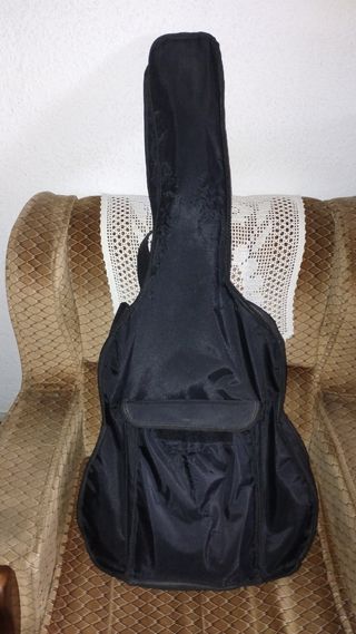 Funciona perfectamente. Incluye: -Guitarra -Funda para llevar en la espalda. -Afinador Yamaha -Libro para aprender -5a cuerda sin estrenar -Cuerdas gato negro -Puente de hueso Recogida en Valencia