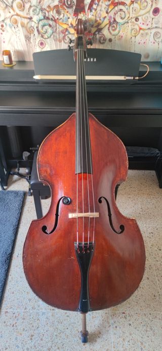 Contrabajo Modesto Balue del año 1920/1930 🤩 Tiro corto 102cm. Ideal para solistas y musicos de manos pequeñas👌🏻 La tapa es de Abeto macizo 🪵 Laterales y fondo de arce La pica es de rosca y de madera (es la original) Monta cuerdas alemanas Flexocor Pirastro Tiene por tanto, una afinación de orquestra (se ofrece cambiarlo a una moderna...mas idónea para tocar Jazz u otros estilos, por ejemplo) El lutier Gonzalo Pieters lo restauró (así que actualmente esta en estado óptimo) Originariamente, era de 3 cuerdas. Hace décadas se le añadió la 4a, por eso, tiene un afinador diferente. Funda incluida