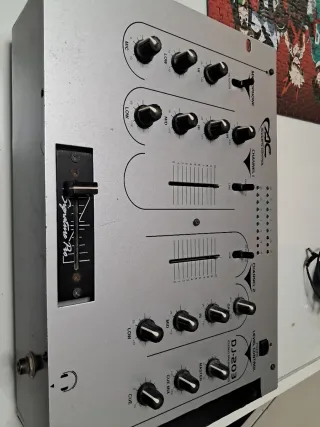 Mesa de mezclas DJ-203 de Acoustic Control. Funciona pero le hace falta una limpieza de conectores y eñ croos fader falla un poco. Ideal para DJs principiantes o para conectar etapa de potencia. Le faltan dos clavijas. Viene con adaptador original. - Control de nivel para micrófono. - Dos canales con control de ganancia. - Ecualizador de 3 bandas (Low, Mid, Hi) por canal. - Crossfader y faders de canal. - Control de Cue Mix y Master.