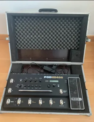 Procesador de amplificadores + efectos Line 6 POD HD400 con maleta de transporte a medida. - Procesador de efectos POD HD400. - Maleta de transporte con interior acolchado.