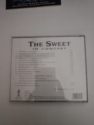 CD de música The Sweet In Concert. - Incluye canciones como Little Willie, Wig Wam Bam, Hell Raiser, Burning/Someone Will, Ballroom Blitz y Blockbuster/FBI.