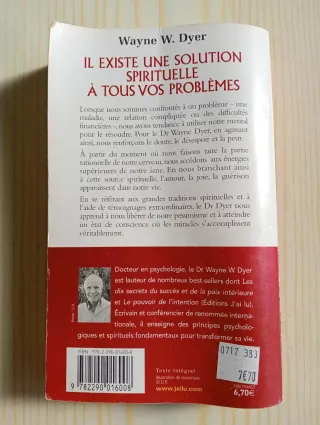 Libro en francés de Wayne Dyer. Tiene manchitas amarillas por el paso del tiempo, pero está perfectamente legible, tal y como se aprecia en las fotos.