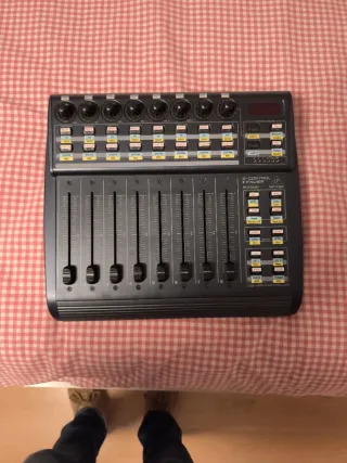 Controlador de superficie para software de producción musical (DAW). - 8 faders motorizados sensibles al tacto. - 8 potenciómetros rotatorios. - Pantalla LED para visualización de parámetros. - Botones de control de transporte (Play, Stop, Rec, etc.). - Conexión USB. En perfecto estado. Usado en estudio. Configurado para Cubase (con los botones etiquetados).
