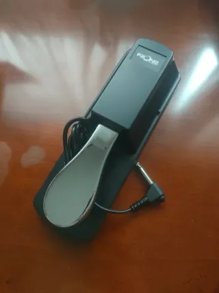 Pedal de piano Fzone con acabado cromado y base negra. - Diseño elegante y funcional. - Cable de conexión incluido. Sin estrenar
