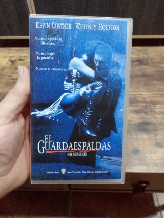 Película El Guardaespaldas en formato VHS.pelicula revisada y en buen estado de reproducción - Protagonizada por Kevin Costner y Whitney Houston. - Incluye las frases Nunca la pierdas de vista, Nunca bajes la guardia y Nunca te enamores. - Distribuida por Warner Bros.