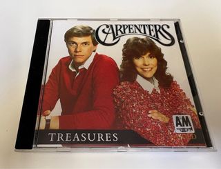 CD de música de Carpenters titulado Treasures. - Álbum de pop rock internacional. - Incluye el logo de A&M Records.