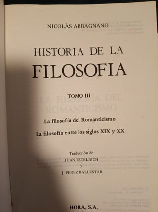 Historia de la Filosofia Abbagnano 3 vols por Nicolás Abbagnano de la editorial HORA S.A. 1982. 3 vols Sellos de biblioteca.