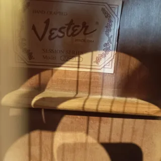 Guitarra acústica Vester Sessionsde los 90.... comprada en Estados Unidos. Modelo BJ-61 Guitarra de gama media alta muy dificil de encontrar en España.Cuerpo Jumbo Sonido potente cálido y con mucha proyección. La Guitarra lleva una pastilla interior y un previo externo Matrix PP 1000,clavijero mejorado marca Gotoh,instrumento raro y buscado, funda dura.correa Fender. - Guitarra acústica Vester. - Estuche incluido.